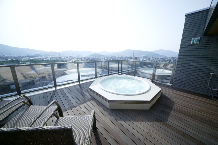 福井県敦賀市のビジネスホテルクオーレ様 幹線道路沿いに位置しており、ビジネスホテルでは珍しく屋上に展望ジャグジーと大浴場、サウナを備え、内装のクオリティーも高いデザイナーズホテルです。
